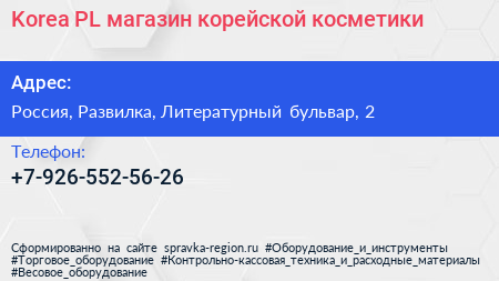 Korea PL, магазин корейской косметики по адресу Ozon box, 2, Литературный бульвар, микрорайон Пригород Лесное, Мисайлово, Ленинский городской округ, Московская область, Центральный федеральный округ, 142721, Россия в дальнейшем Организация, размещена в следующих категориях:
