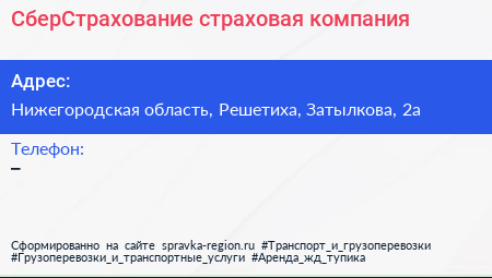 СберСтрахование, страховая компания по адресу Нижегородская область, Решетиха, Затылкова, 2а в дальнейшем Организация, размещена в следующих категориях: