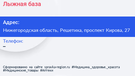 Лыжная база по адресу Нижегородская область, Решетиха, проспект Кирова, 27 в дальнейшем Организация, размещена в следующих категориях: