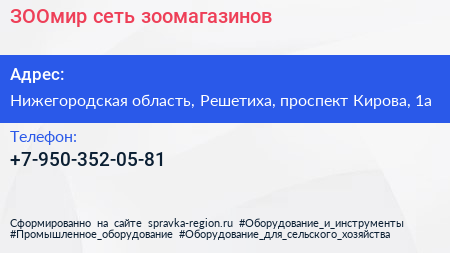 ЗООмир, сеть зоомагазинов по адресу Нижегородская область, Решетиха, проспект Кирова, 1а в дальнейшем Организация, размещена в следующих категориях:
