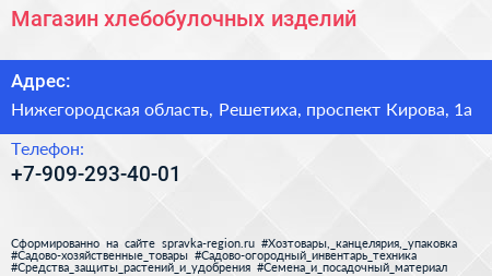 Магазин хлебобулочных изделий по адресу Нижегородская область, Решетиха, проспект Кирова, 1а в дальнейшем Организация, размещена в следующих категориях: