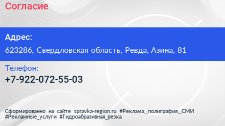 Согласие по адресу 623286, Свердловская область, Ревда, Азина, 81 в дальнейшем Организация, размещена в следующих категориях: