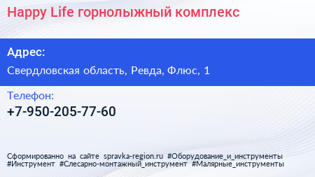 Happy Life, горнолыжный комплекс по адресу Свердловская область, Ревда, Флюс, 1 в дальнейшем Организация, размещена в следующих категориях: