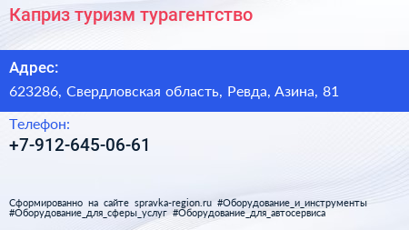 Каприз-туризм, турагентство по адресу 623286, Свердловская область, Ревда, Азина, 81 в дальнейшем Организация, размещена в следующих категориях: