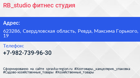 RB_studio, фитнес-студия по адресу 623286, Свердловская область, Ревда, Максима Горького, 19 в дальнейшем Организация, размещена в следующих категориях:
