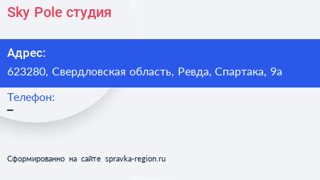 Sky Pole, студия по адресу 623280, Свердловская область, Ревда, Спартака, 9а в дальнейшем Организация, размещена в следующих категориях: