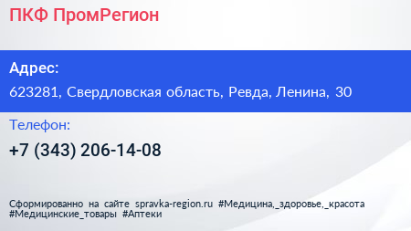 ПКФ ПромРегион по адресу 623281, Свердловская область, Ревда, Ленина, 30 в дальнейшем Организация, размещена в следующих категориях: