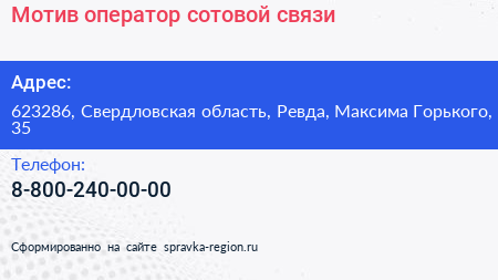 Мотив, оператор сотовой связи по адресу 623286, Свердловская область, Ревда, Максима Горького, 35 в дальнейшем Организация, размещена в следующих категориях:
