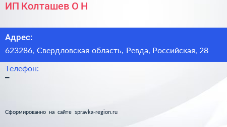 ИП Колташев О.Н. по адресу 623286, Свердловская область, Ревда, Российская, 28 в дальнейшем Организация, размещена в следующих категориях: