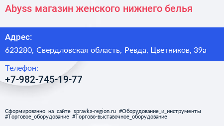 Abyss, магазин женского нижнего белья по адресу 623280, Свердловская область, Ревда, Цветников, 39а в дальнейшем Организация, размещена в следующих категориях: