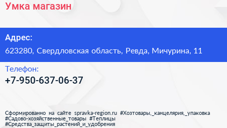 Умка, магазин по адресу 623280, Свердловская область, Ревда, Мичурина, 11 в дальнейшем Организация, размещена в следующих категориях: