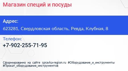 Магазин специй и посуды по адресу 623281, Свердловская область, Ревда, Клубная, 8 в дальнейшем Организация, размещена в следующих категориях:
