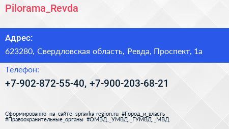 Pilorama_Revda по адресу 623280, Свердловская область, Ревда, Проспект, 1а в дальнейшем Организация, размещена в следующих категориях: