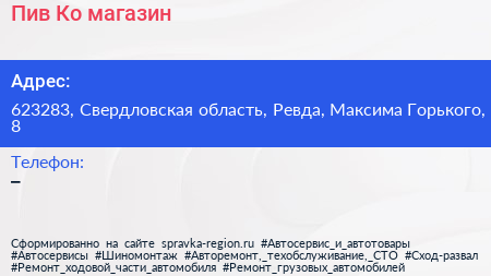 Пив & Ко, магазин по адресу 623283, Свердловская область, Ревда, Максима Горького, 8 в дальнейшем Организация, размещена в следующих категориях: