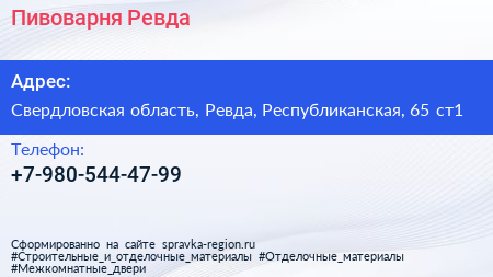 Пивоварня Ревда по адресу Свердловская область, Ревда, Республиканская, 65 ст1 в дальнейшем Организация, размещена в следующих категориях: