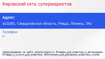 Кировский, сеть супермаркетов по адресу 623281, Свердловская область, Ревда, Ленина, 34а в дальнейшем Организация, размещена в следующих категориях:
