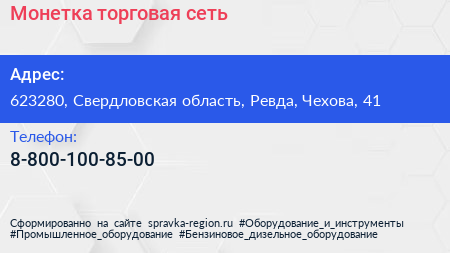 Монетка, торговая сеть по адресу 623280, Свердловская область, Ревда, Чехова, 41 в дальнейшем Организация, размещена в следующих категориях: