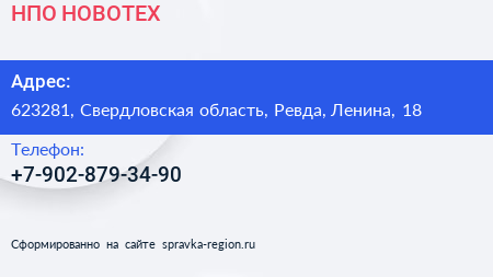 НПО НОВОТЕХ по адресу 623281, Свердловская область, Ревда, Ленина, 18 в дальнейшем Организация, размещена в следующих категориях: