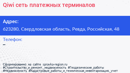 Qiwi, сеть платежных терминалов по адресу 623280, Свердловская область, Ревда, Российская, 48 в дальнейшем Организация, размещена в следующих категориях: