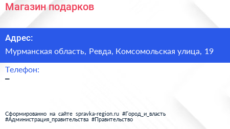 Магазин подарков по адресу Мурманская область, Ревда, Комсомольская улица, 19 в дальнейшем Организация, размещена в следующих категориях: