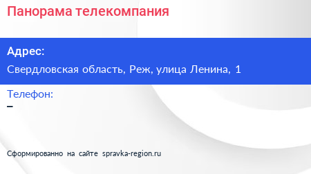 Панорама, телекомпания по адресу Свердловская область, Реж, улица Ленина, 1 в дальнейшем Организация, размещена в следующих категориях: