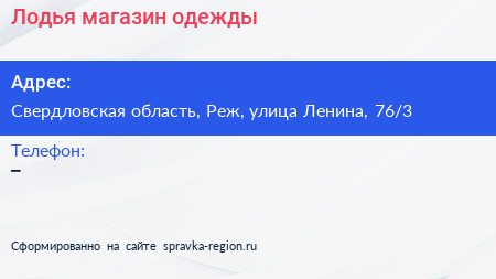 Лодья, магазин одежды по адресу Свердловская область, Реж, улица Ленина, 76/3 в дальнейшем Организация, размещена в следующих категориях:
