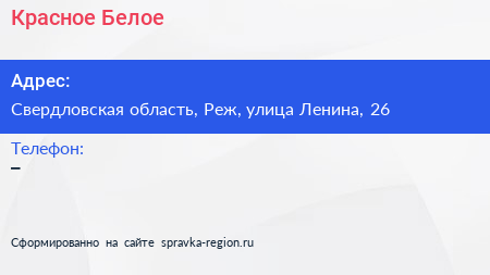 Красное & Белое по адресу Свердловская область, Реж, улица Ленина, 26 в дальнейшем Организация, размещена в следующих категориях: