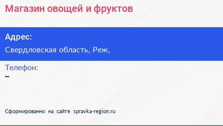 Магазин овощей и фруктов по адресу Свердловская область, Реж, в дальнейшем Организация, размещена в следующих категориях: