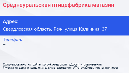 Среднеуральская птицефабрика, магазин по адресу Свердловская область, Реж, улица Калинина, 37 в дальнейшем Организация, размещена в следующих категориях:
