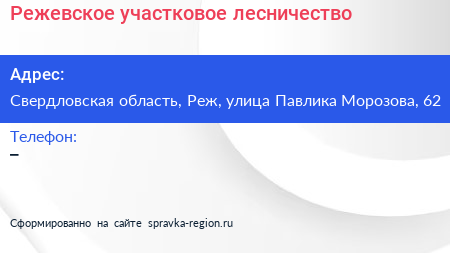 Режевское участковое лесничество по адресу Свердловская область, Реж, улица Павлика Морозова, 62 в дальнейшем Организация, размещена в следующих категориях: