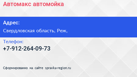 Автомакс, автомойка по адресу Свердловская область, Реж, в дальнейшем Организация, размещена в следующих категориях: