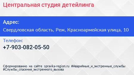 Центральная, студия детейлинга по адресу Свердловская область, Реж, Красноармейская улица, 10 в дальнейшем Организация, размещена в следующих категориях: