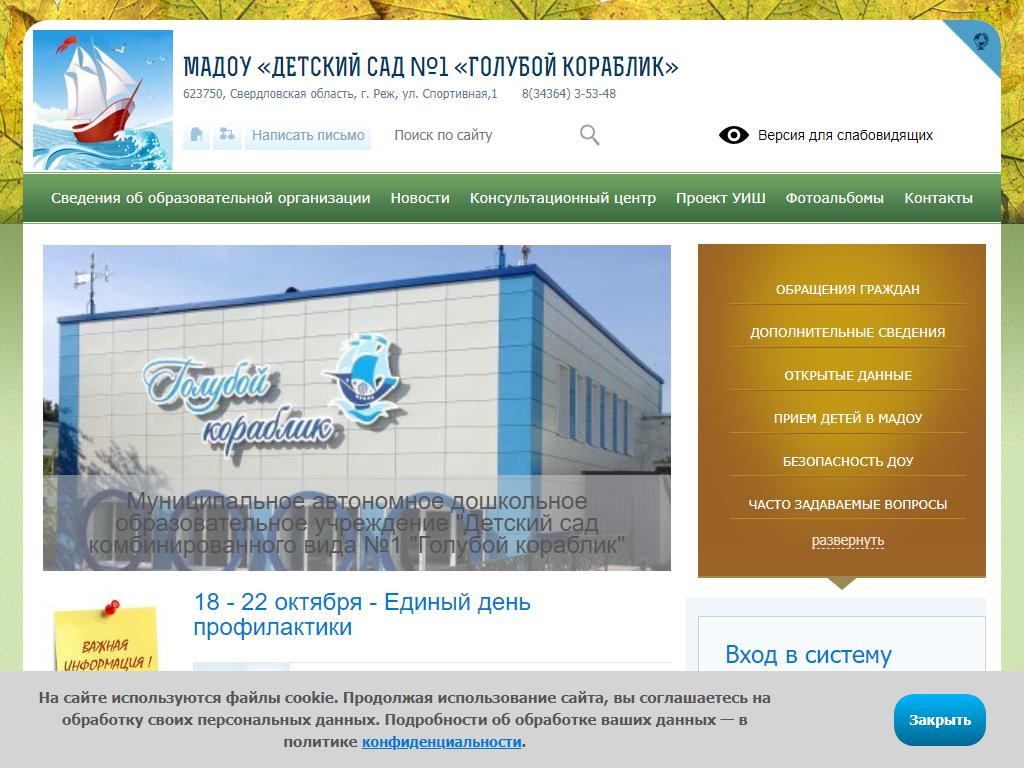 Голубой кораблик, детский сад №1 по адресу Свердловская область, Реж, Спортивная улица, 1 в дальнейшем Организация, размещена в следующих категориях: