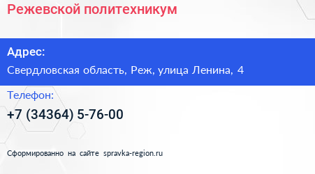 Режевской политехникум по адресу Свердловская область, Реж, улица Ленина, 4 в дальнейшем Организация, размещена в следующих категориях: