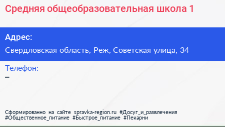 Средняя общеобразовательная школа №1 по адресу Свердловская область, Реж, Советская улица, 34 в дальнейшем Организация, размещена в следующих категориях: