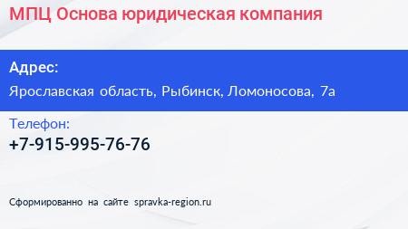 МПЦ Основа, юридическая компания по адресу Ярославская область, Рыбинск, Ломоносова, 7а в дальнейшем Организация, размещена в следующих категориях: