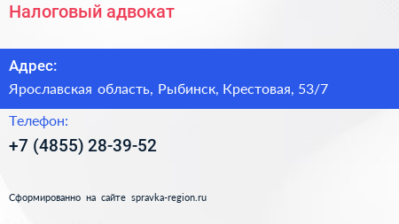 Налоговый адвокат по адресу Ярославская область, Рыбинск, Крестовая, 53/7 в дальнейшем Организация, размещена в следующих категориях: