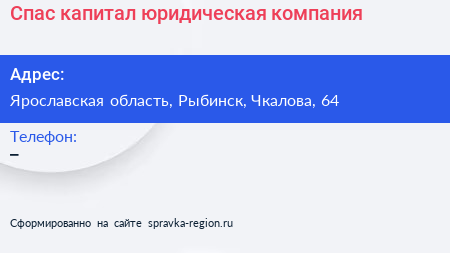 Спас капитал, юридическая компания по адресу Ярославская область, Рыбинск, Чкалова, 64 в дальнейшем Организация, размещена в следующих категориях: