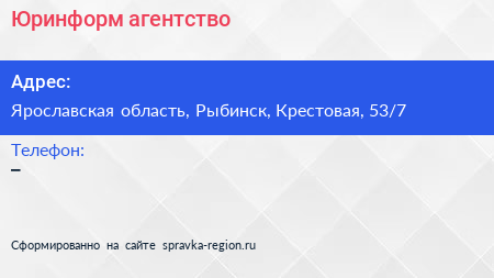 Юринформ, агентство по адресу Ярославская область, Рыбинск, Крестовая, 53/7 в дальнейшем Организация, размещена в следующих категориях: