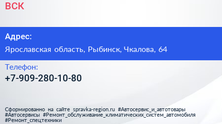 ВСК по адресу Ярославская область, Рыбинск, Чкалова, 64 в дальнейшем Организация, размещена в следующих категориях: