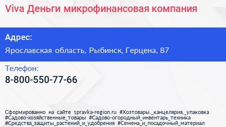 Viva Деньги, микрофинансовая компания по адресу Ярославская область, Рыбинск, Герцена, 87 в дальнейшем Организация, размещена в следующих категориях: