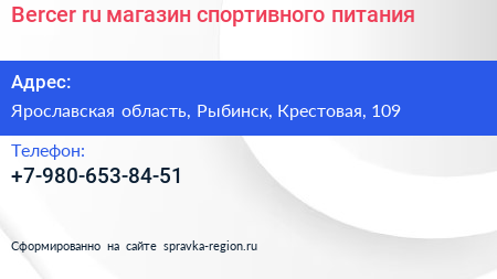Bercer.ru, магазин спортивного питания по адресу Ярославская область, Рыбинск, Крестовая, 109 в дальнейшем Организация, размещена в следующих категориях: