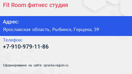 Fit Room, фитнес-студия по адресу Ярославская область, Рыбинск, Герцена, 39 в дальнейшем Организация, размещена в следующих категориях: