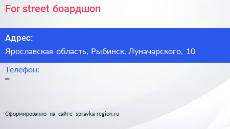 For street, боардшоп по адресу Ярославская область, Рыбинск, Луначарского, 10 в дальнейшем Организация, размещена в следующих категориях: