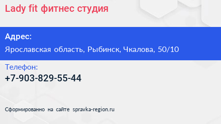 Lady fit, фитнес-студия по адресу Ярославская область, Рыбинск, Чкалова, 50/10 в дальнейшем Организация, размещена в следующих категориях: