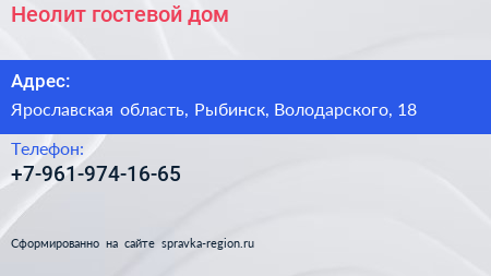 Неолит, гостевой дом по адресу Ярославская область, Рыбинск, Володарского, 18 в дальнейшем Организация, размещена в следующих категориях: