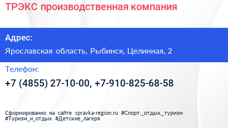 ТРЭКС, производственная компания по адресу Ярославская область, Рыбинск, Целинная, 2 в дальнейшем Организация, размещена в следующих категориях:
