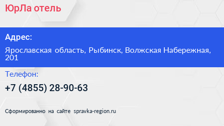 ЮрЛа, отель по адресу Ярославская область, Рыбинск, Волжская Набережная, 201 в дальнейшем Организация, размещена в следующих категориях: