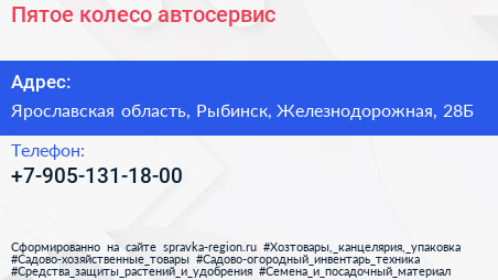 Пятое колесо, автосервис по адресу Ярославская область, Рыбинск, Железнодорожная, 28Б в дальнейшем Организация, размещена в следующих категориях: