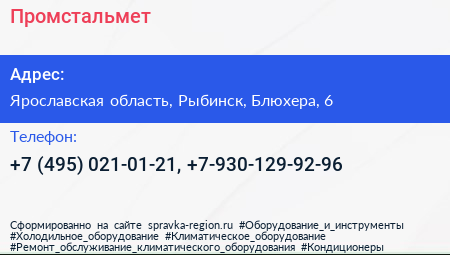 Промстальмет по адресу Ярославская область, Рыбинск, Блюхера, 6 в дальнейшем Организация, размещена в следующих категориях: